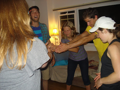 Hiiiiiiiiiiiiiiiiiiiiii-ya! Last night after a great home cooked meal, our gracious Portland hosts learned us the Ninja Game. All players stand in a circle with their hands in the middle (straight arms parallel to the body, hands in prayer). One person yells, “aaaaaaaaaahhhhhhhhhh ninja!”, and everyone jumps back, striking a ninja pose. That person then goes first, trying to ninja/judo chop anyone of their choosing. Their move just has to be one fluid motion. As the other ninjas, you are allowed to make moves to dodge this attack. You must stick the move like a statue once you make it. The goal is to chop another person’s hand, and they are out. You go around in a circle until there is only one person left standing. Then over and over again. It’s amazing, and with practice your moves and ninja sounds just get better and better. We played several rounds and probably would have played all night except that we had to get up early this morning to drive to Cali. But have no fear, we did have a rousing game this morning in the backyard before taking off.